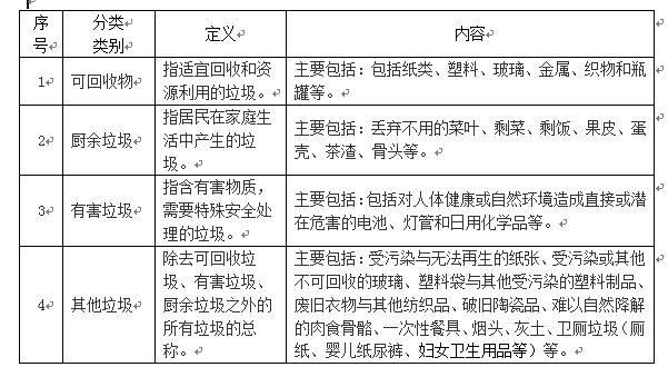 生活垃圾分类方法应符合下表规定: