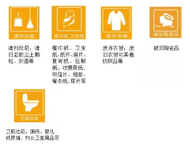 2.每类生活垃圾下设典型组分的小标志,具体标志如下: